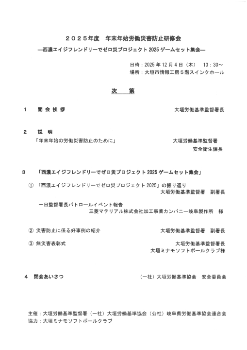 | 3.西濃エイジフレンドリーでゼロ災プロジェクト2025ゲームセット集会 |